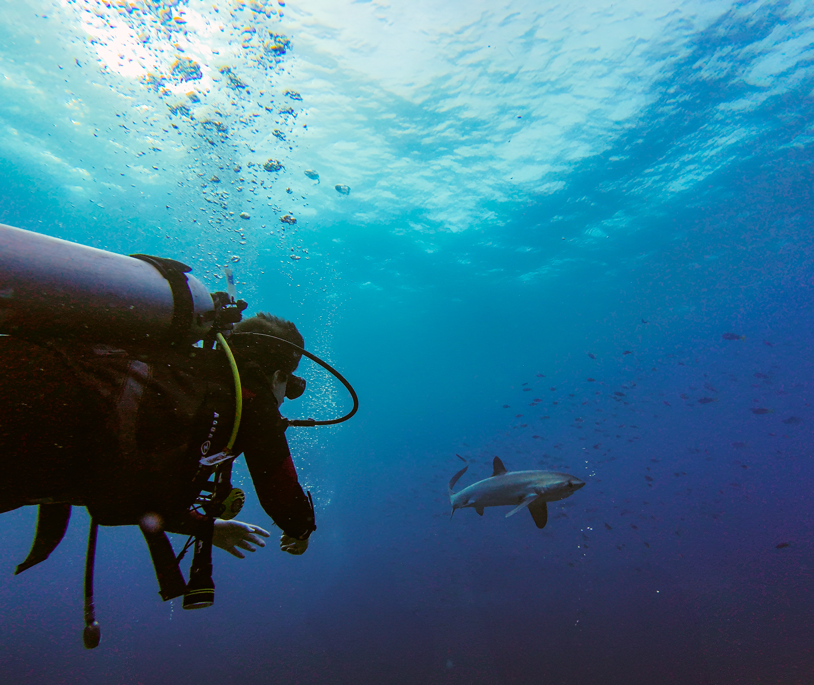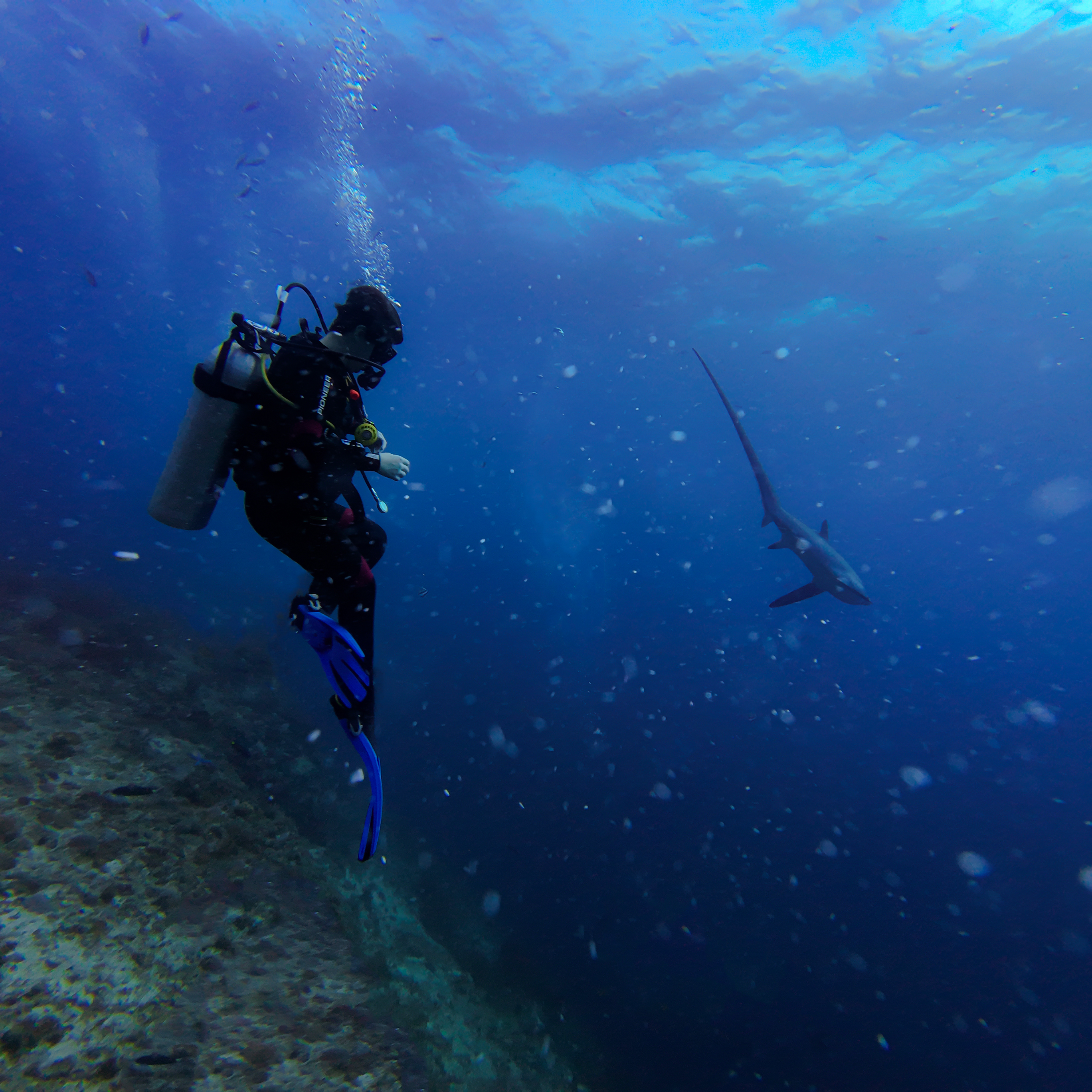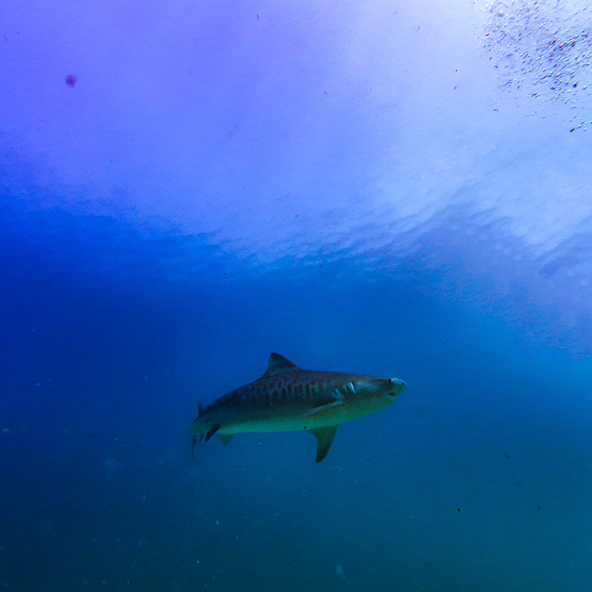 During my last trip overseas, I visited Malapascua in the Philippines, a place famous for its incredible marine life. There, I had the chance to document a stunning thresher shark (Alopias pelagicus), known for its extraordinarily long tail that it uses like a whip to stun prey. I also encountered a majestic tiger shark (Galeocerdo cuvier), a species recognizable by its striped pattern and its reputation as one of the ocean’s most versatile predators. Seeing them glide so calmly through the water was absolutely mesmerizing.