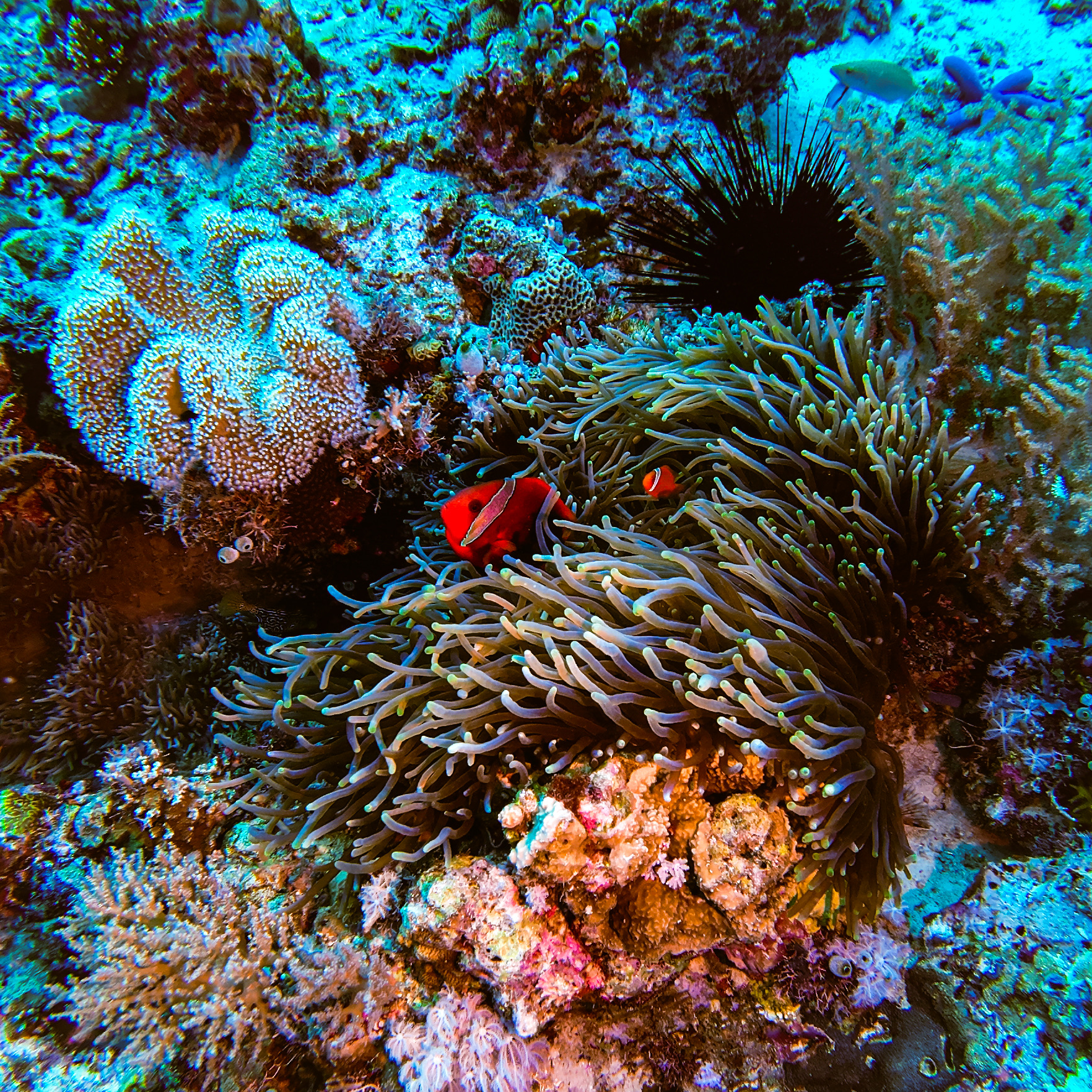 Another unforgettable moment was observing a local sea turtle, most likely the green sea turtle (Chelonia mydas), which can travel thousands of kilometers between feeding and nesting sites. I also spent time watching clownfish (Amphiprion ocellaris), famous for their symbiotic relationship with sea anemones that protect them from predators. Being able to photograph these creatures in their natural habitat felt like stepping into a living documentary. The vibrant colors and peaceful environment made every dive unique.